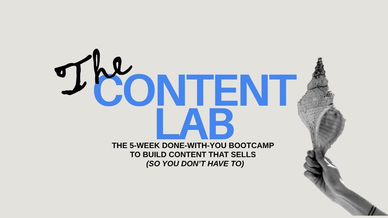The Content Lab is a 5-week done-with-you content bootcamp that will leave you waking up every day knowing exactly what to post, what to say, and how to say it so that people finally start buying.